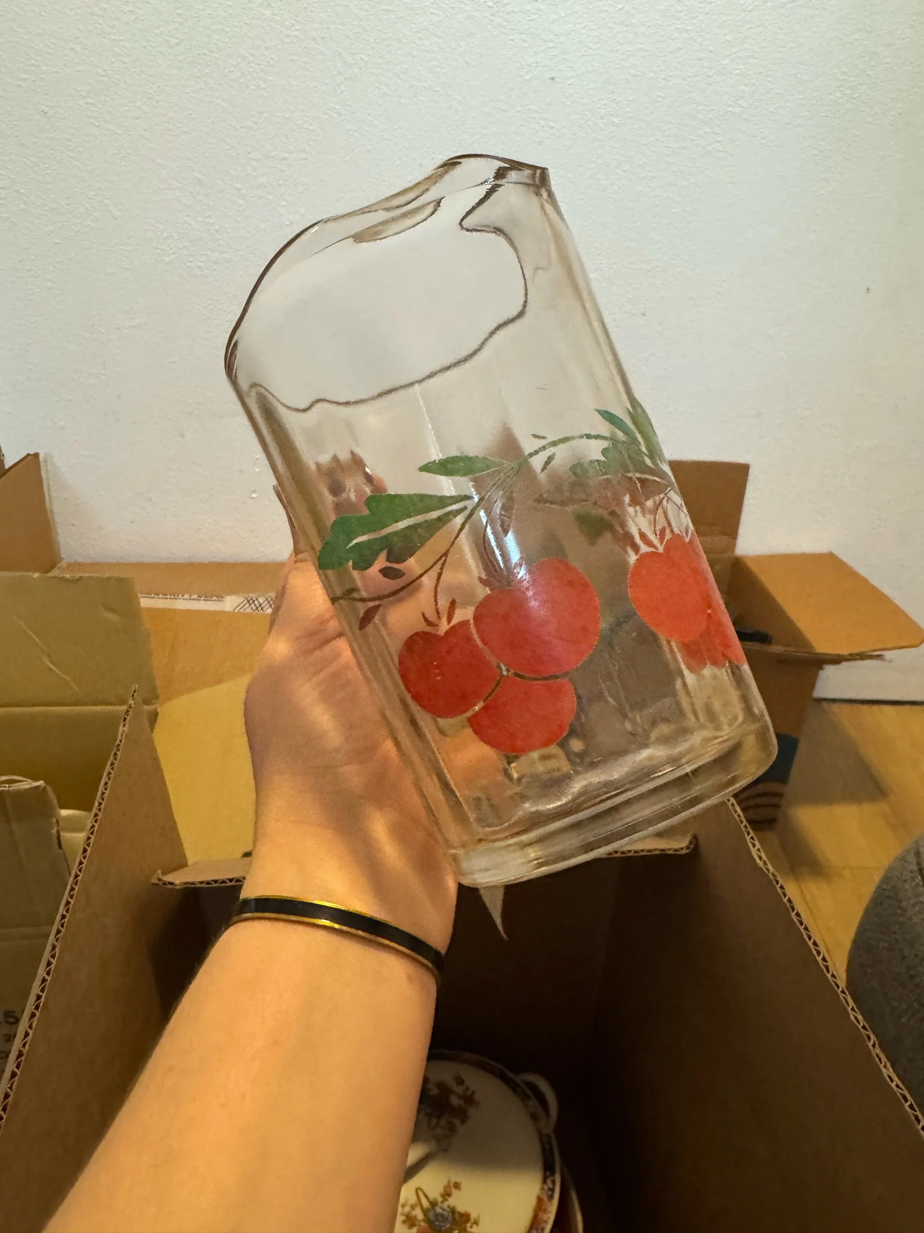 Design: Hand-painted or decal graphics typically depicting cherries or tomatoes on a green vine.
