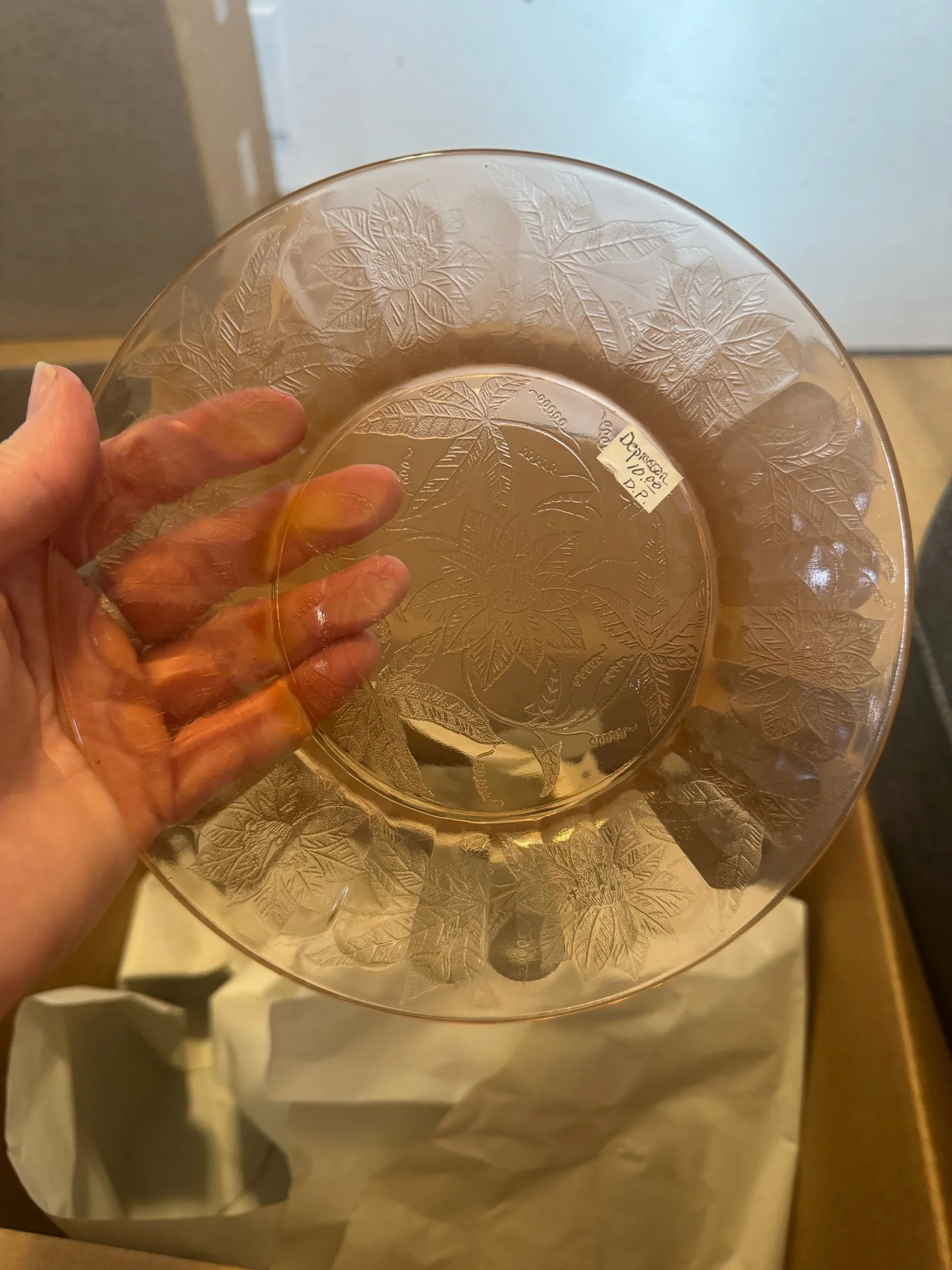 Pink Depression Glass. There are two highly similar patterns that match the design shown: