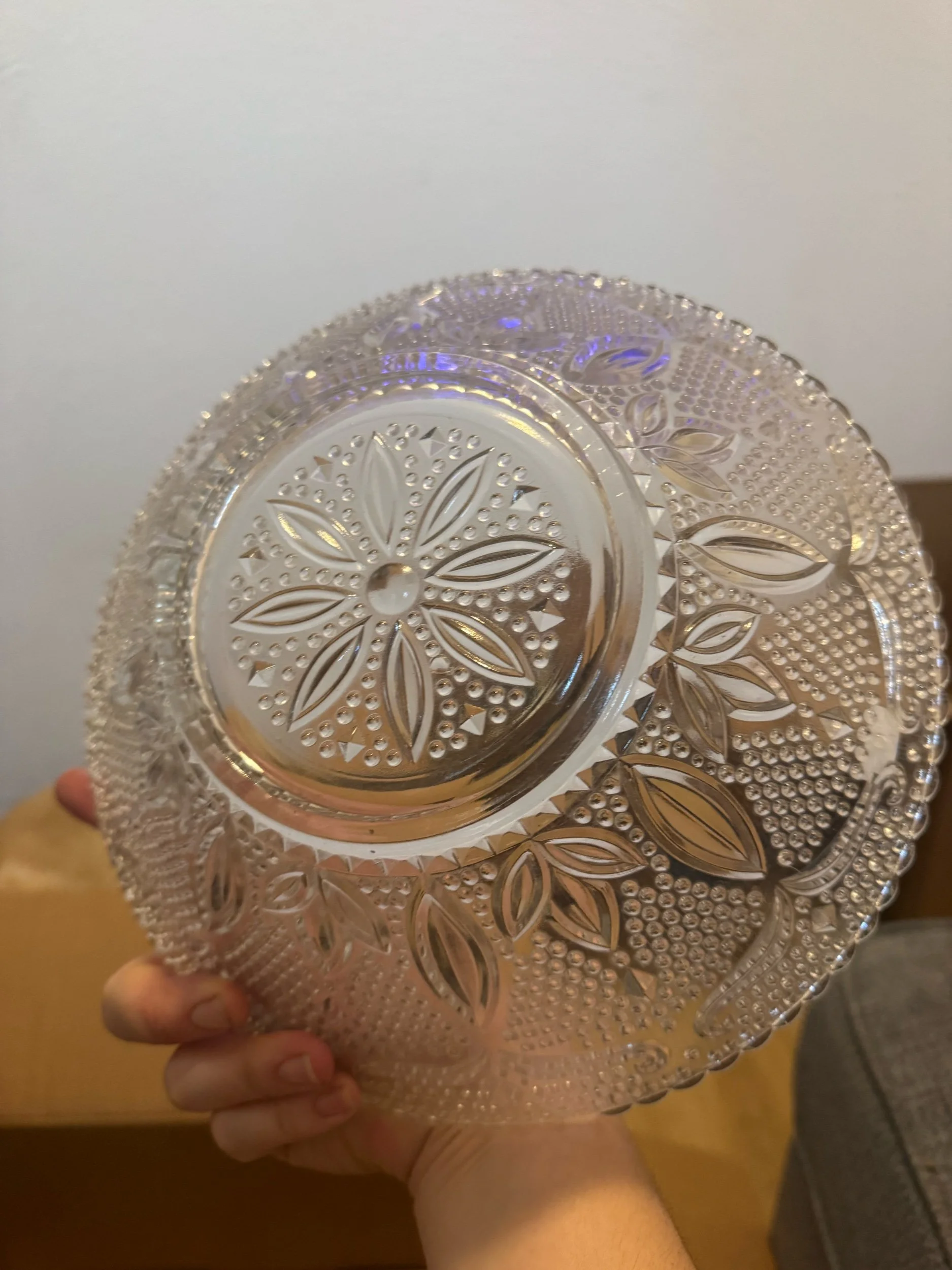 Pattern: Heritage (sometimes referred to as Sandwich Glass).