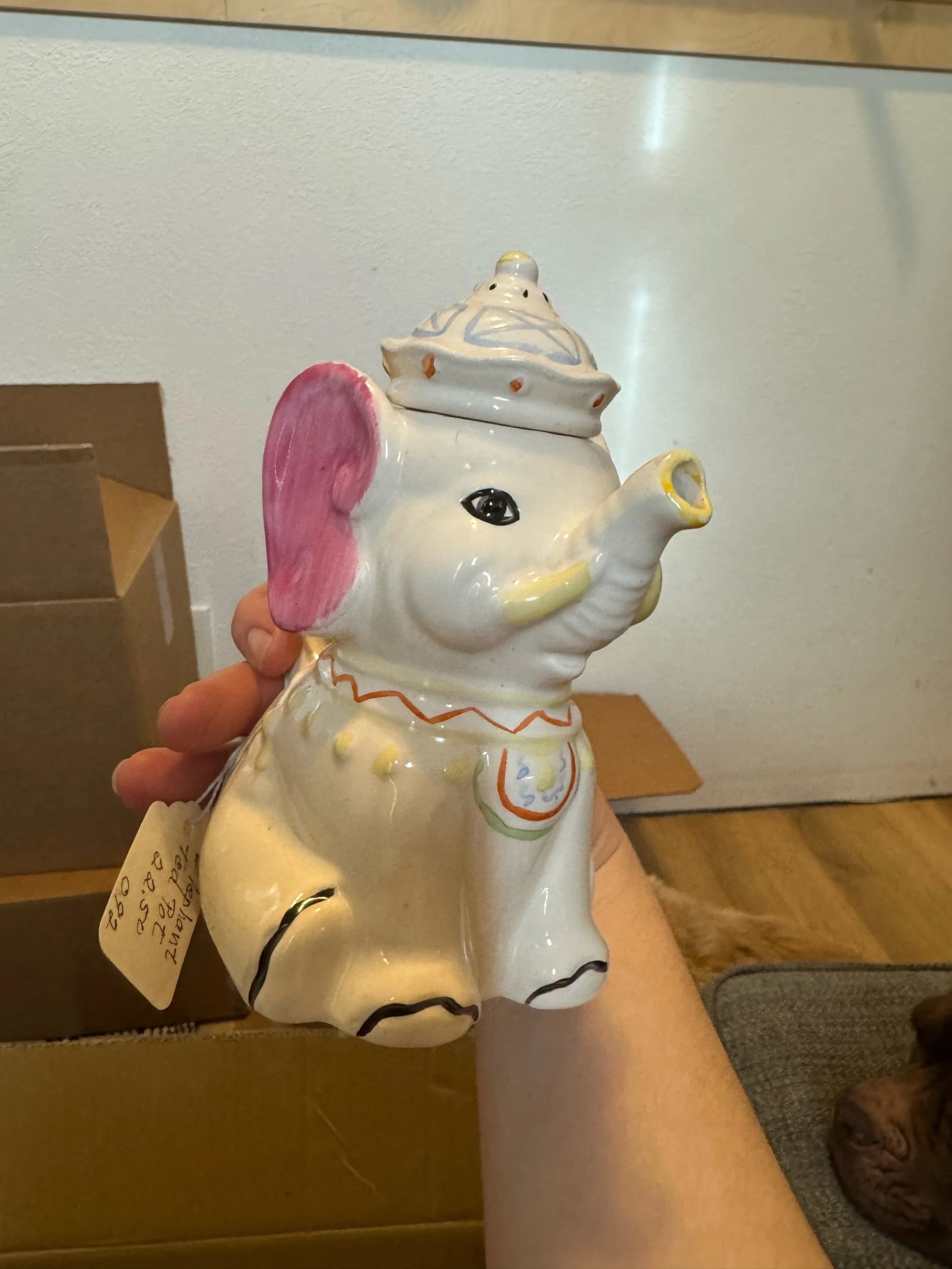 Shawnee Pottery "Lucky Elephant" piece. Based on its design, it is likely either a small teapot or a tabletop accessory from the same line.
