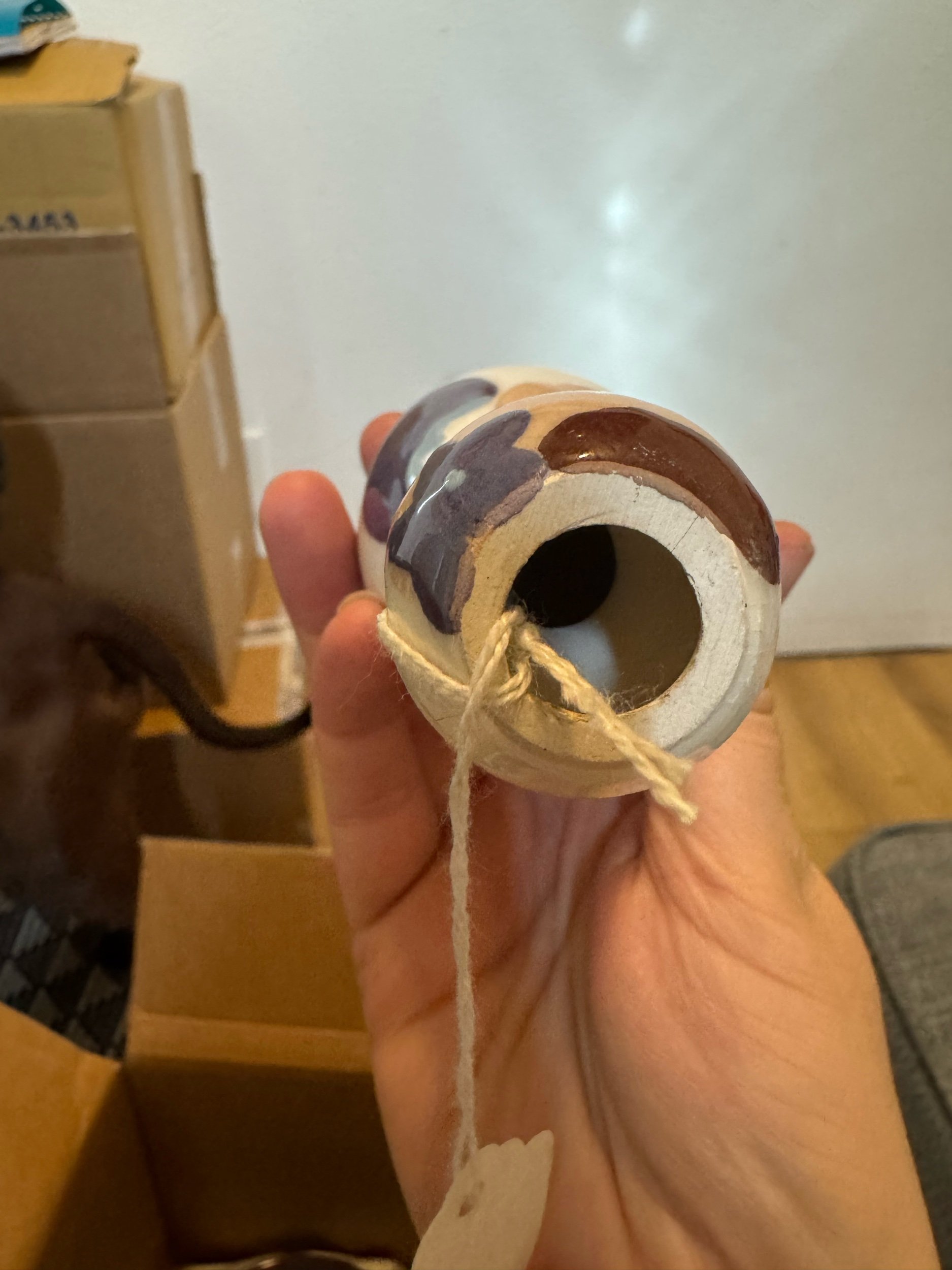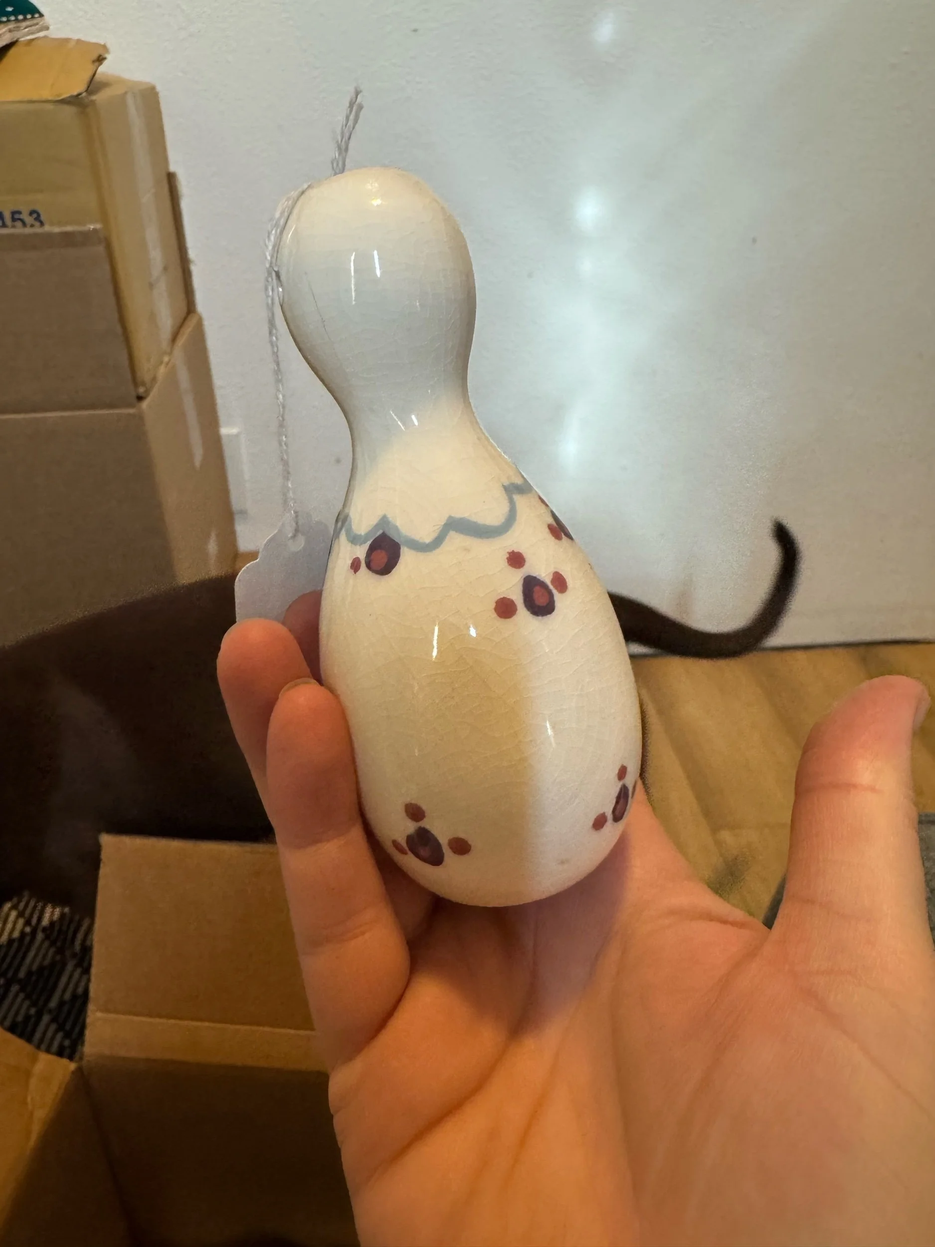 Design Features: These figurines typically stand about 5 inches tall and feature hand-painted details. The hollow top often has a hole meant for a ribbon or cord, allowing it to be hung.